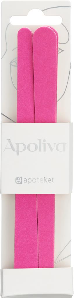 sidan används för att fila nageln till önskad längd och form. Den ljusrosa