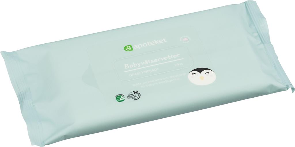 Apotekets babyvåtservetter är milda och skonsamma våtservetter