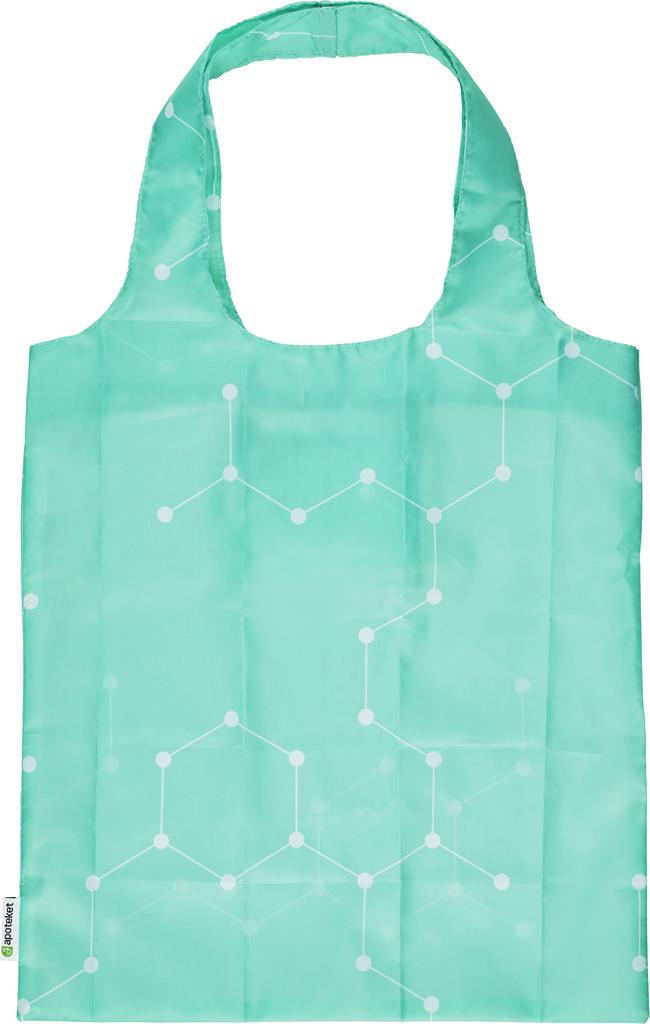 Ihopvikbar shoppingkasse tillverkad av återvunnen PET. Ett bra och miljövänligt alternativ till engångspåsar