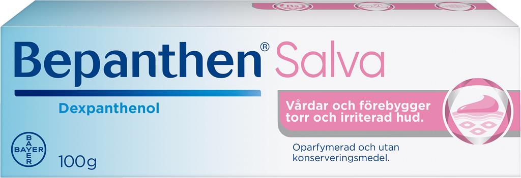 Bepanthen Salva är en hudsalva som används för att skydda mot lindriga hudirritationer och ytliga sprickor i huden som kan uppstå på grund av torr hud.