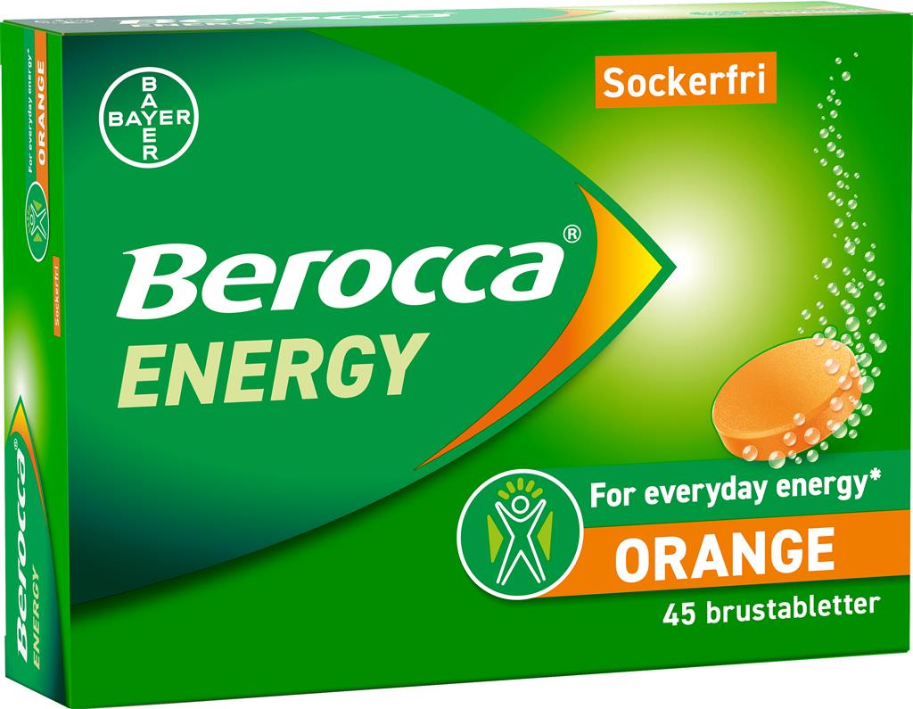 Berocca Energy Orange innehåller en kombination av 11 vitaminer och mineraler. Produkten innehåller bland annat vitamin C, magnesium samt flera B-vitaminer och zink. Brustabletterna löses i vatten och har apelsinsmak. Berocca Energy Orange är sockerfri och passar vuxna och barn från 12 år. Produkten är även vegansk och glutenfri.