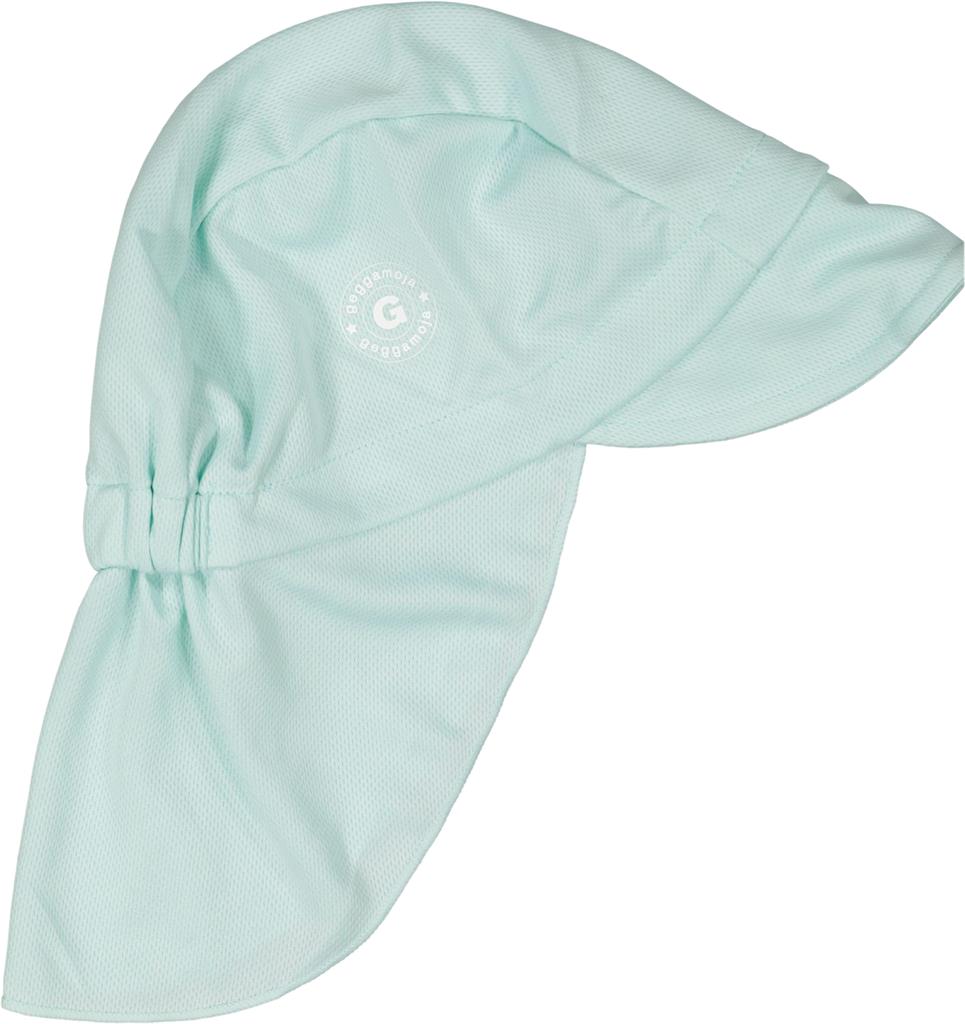 GEGGAMOJA UV50+ Solkeps i mint är ett funktionellt och skyddande plagg för soliga dagar. Kepsen har en bred skärm framtill och ett förlängt nackskydd som täcker känsliga partier mot direkt solljus. Tillverkad i ett mjukt, snabbtorkande material som andas, vilket gör den bekväm att bära även under varma sommardagar. UV-skydd UPF 50+ hjälper till att blockera upp till 98 % av solens strålar. Perfekt för utelek, barnvagnspromenader eller strandvistelser.