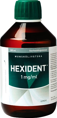 - Vuxna: Om inte annat ordinerats av tandläkare, skölj munnen 2 gånger dagligen med cirka 10 ml Hexident under minst 1 minut. Vätskan skall därefter spottas ut.