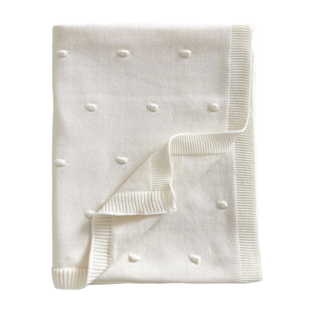 Stickad vit babyfilt