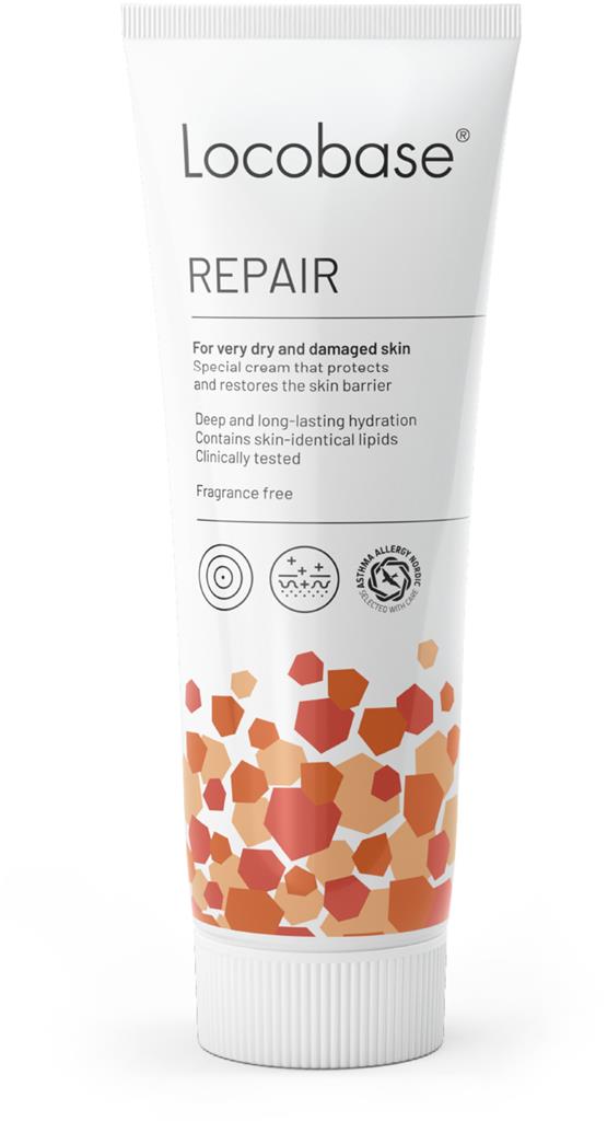 Locobase Repair är en specialkräm som snabbt och effektivt reparerar torr och sprucken hud i ansikte och på kroppen. Locobase Rapair skyddar och bygger upp hudbarriären genom att tillföra hudidentiska fettämnen. Verkar direkt vid applicering och upp till 24 timmar.