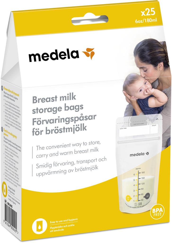 Förvaringspåsarna är klara att användas och gör det enkelt att förvara, transportera och värma bröstmjölk på ett bekvämt och hygieniskt sätt. Påsarna har ett fryssäkert skydd med dubbel förslutning som förhindrar läckage och kräver mindre utrymme än vad flaskor gör. De platta påsarna gör att mjölken tinas upp snabbt, och materialet tål frysförvaring.