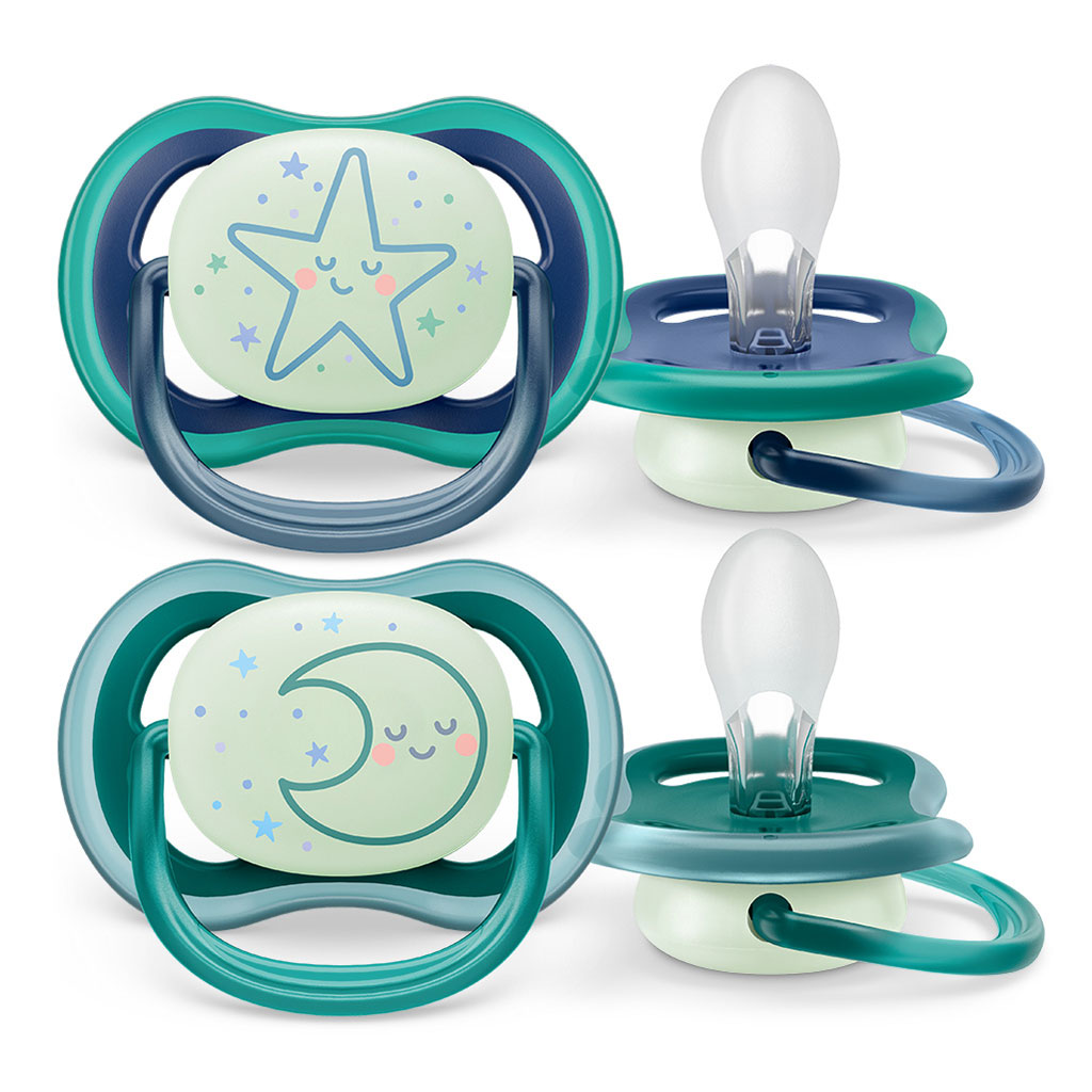 tänder och tandkött. Nattnappens knopp lyser i mörkret för att enkelt kunna